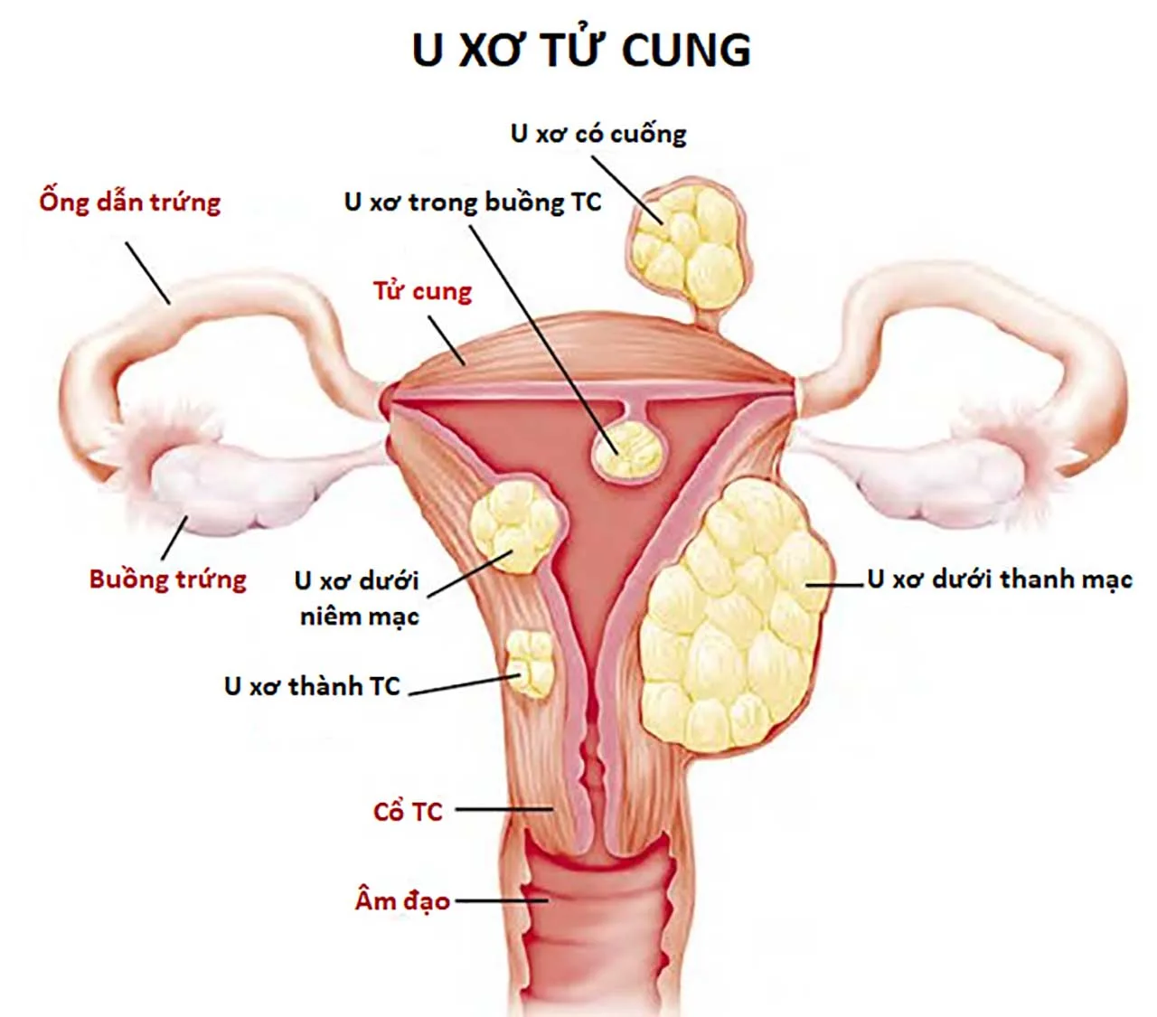 Theo chia sẻ của các chuyên gia, u xơ tử cung tồn tại ở 3 dạng chính, đó là: